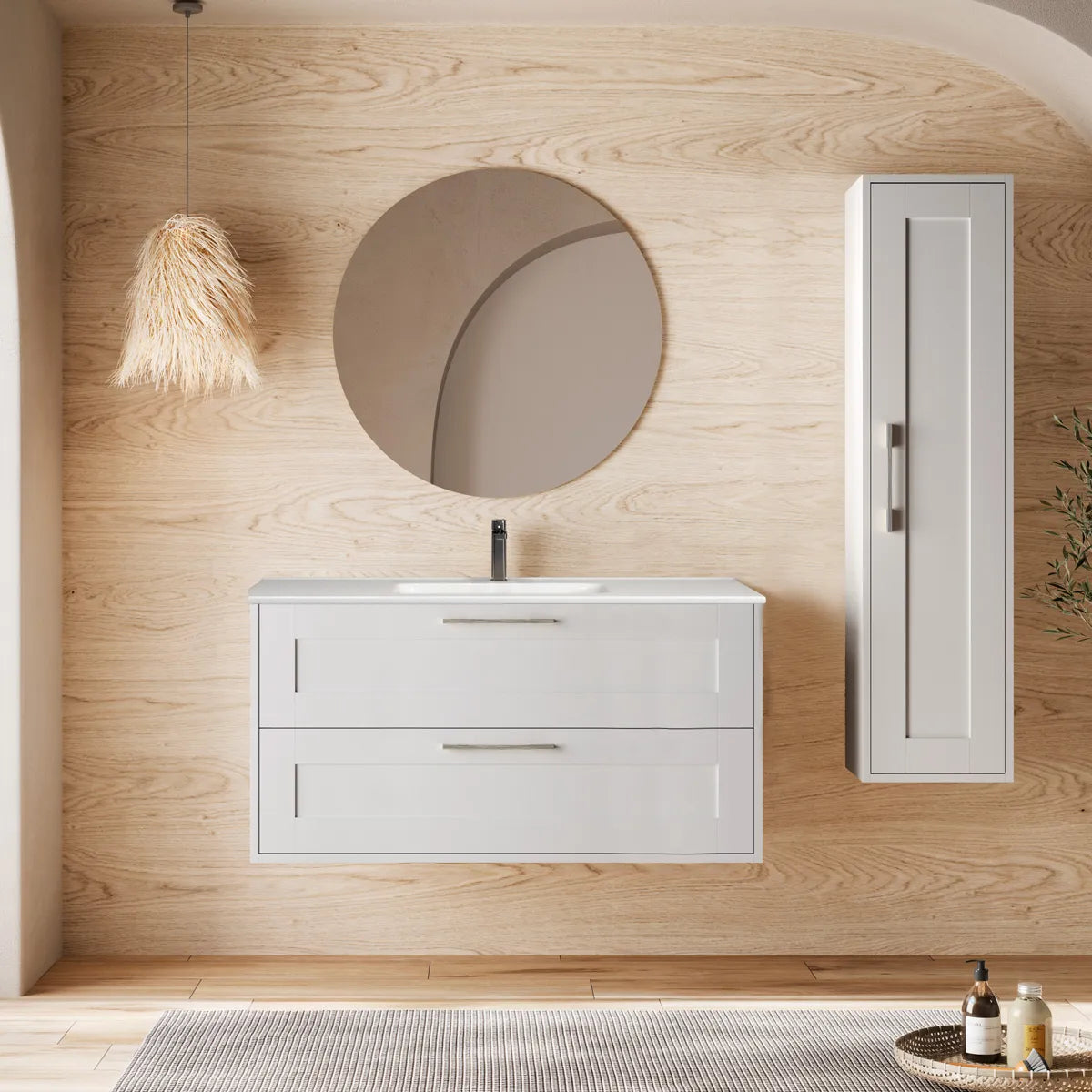 Kan kombineres med vask i Solid Surface i matchende farve eller klassisk hvid, samt blandingsbatteri, bundventil, vandlås og spejl.