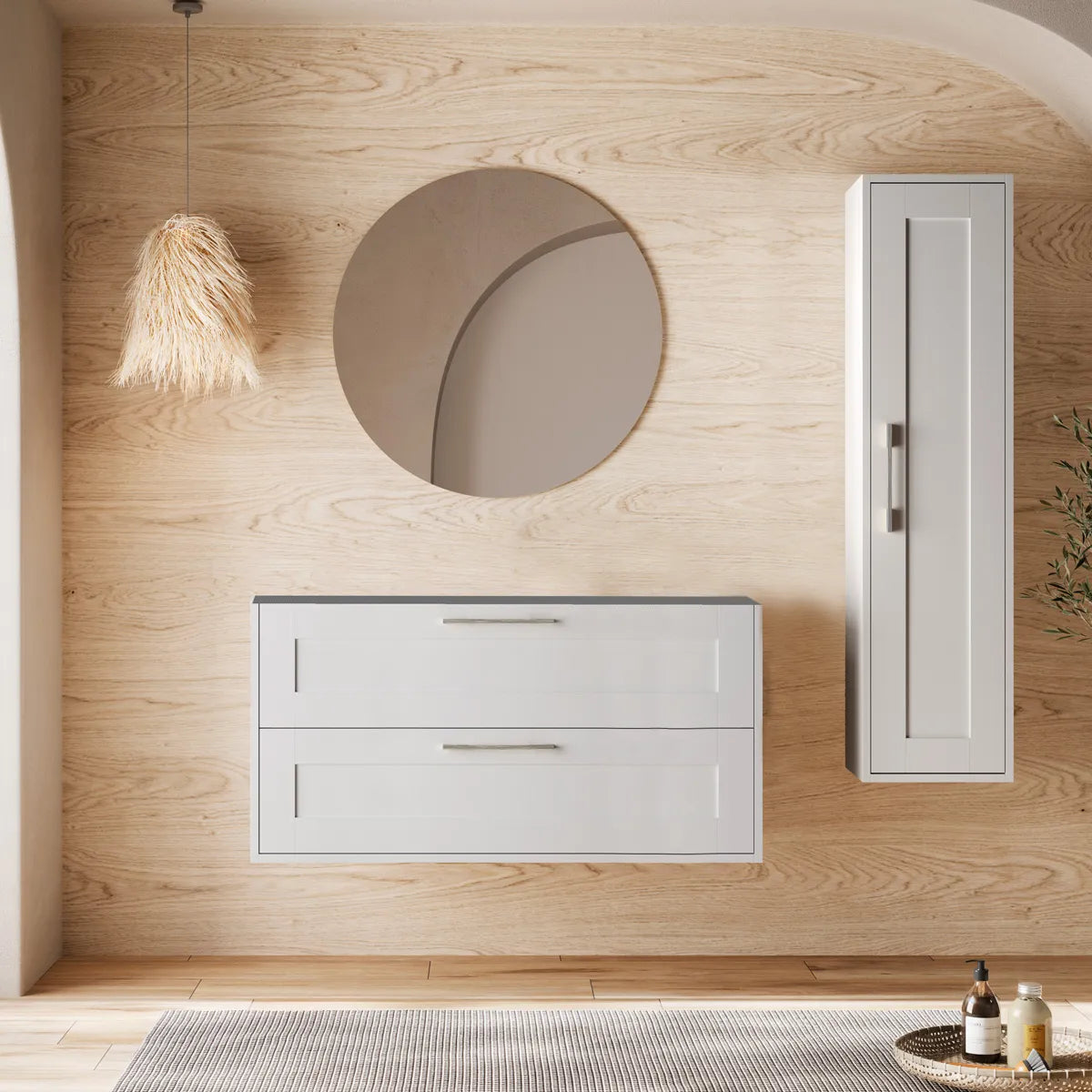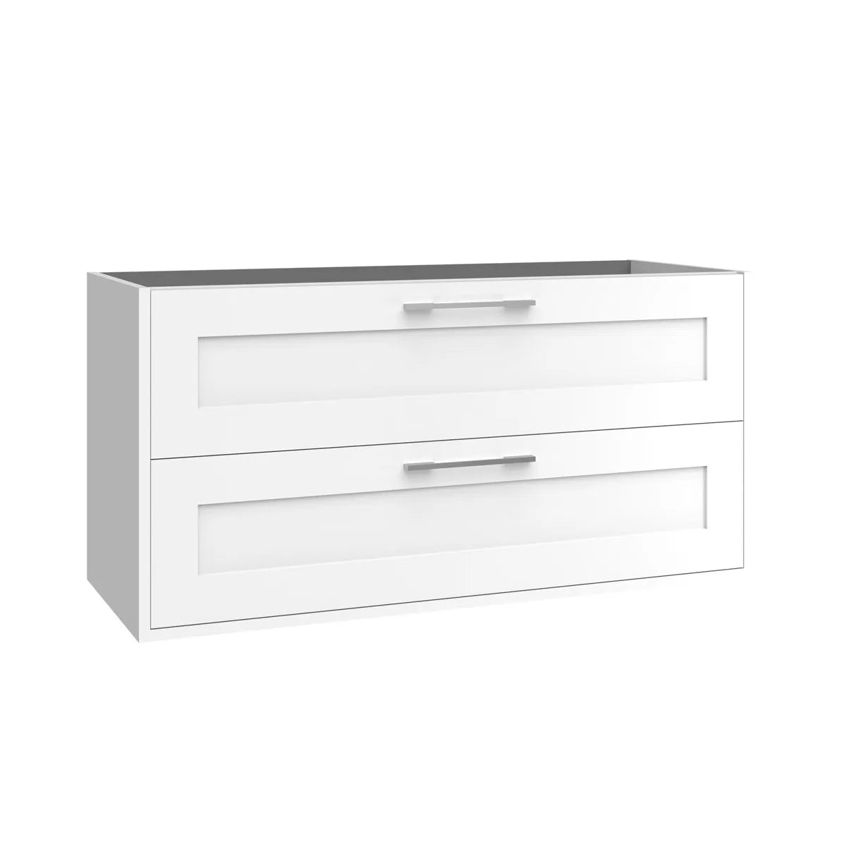 Kommoderne fås i bredderne 60, 80, 100 og 120 cm, med en dybde på 45 cm og højde på 55 cm – perfekt til både små og store badeværelser. Produceret i lamineret 19 mm MDF med udpræget almueprofil.