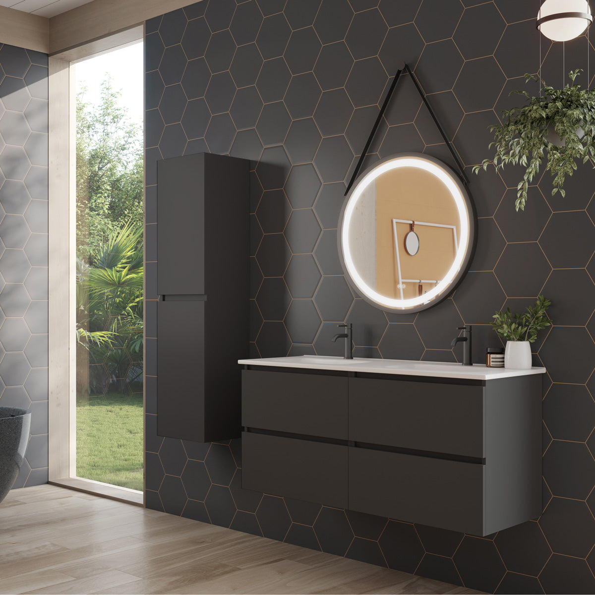 Møblerne i Viken-serien fås i tidløse farver – Hvid Mat, Sort Mat og Grå Mat. Den matte finish giver et sofistikeret og moderne udtryk, samtidig med at overfladen er let at rengøre og vedligeholde. Farverne er nøje udvalgt for at harmonere med forskellige badeværelsesstile og farveskemaer, hvilket gør det nemt at integrere møblerne i din indretning.