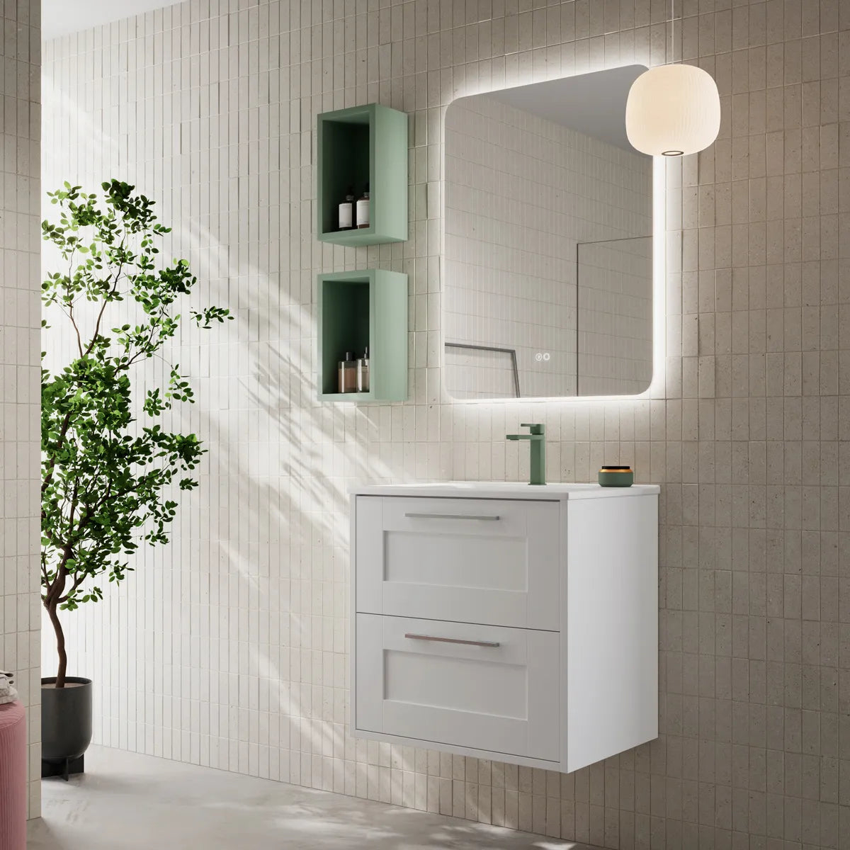 Kan kombineres med vask i Solid Surface i matchende farve eller klassisk hvid, samt blandingsbatteri, bundventil, vandlås og spejl.