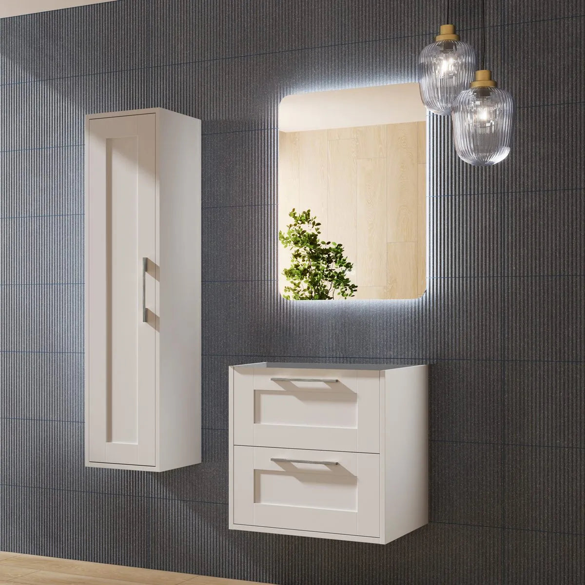 Kommoderne fås i bredderne 60, 80, 100 og 120 cm, med en dybde på 45 cm og højde på 55 cm – perfekt til både små og store badeværelser. Produceret i lamineret 19 mm MDF med udpræget almueprofil.