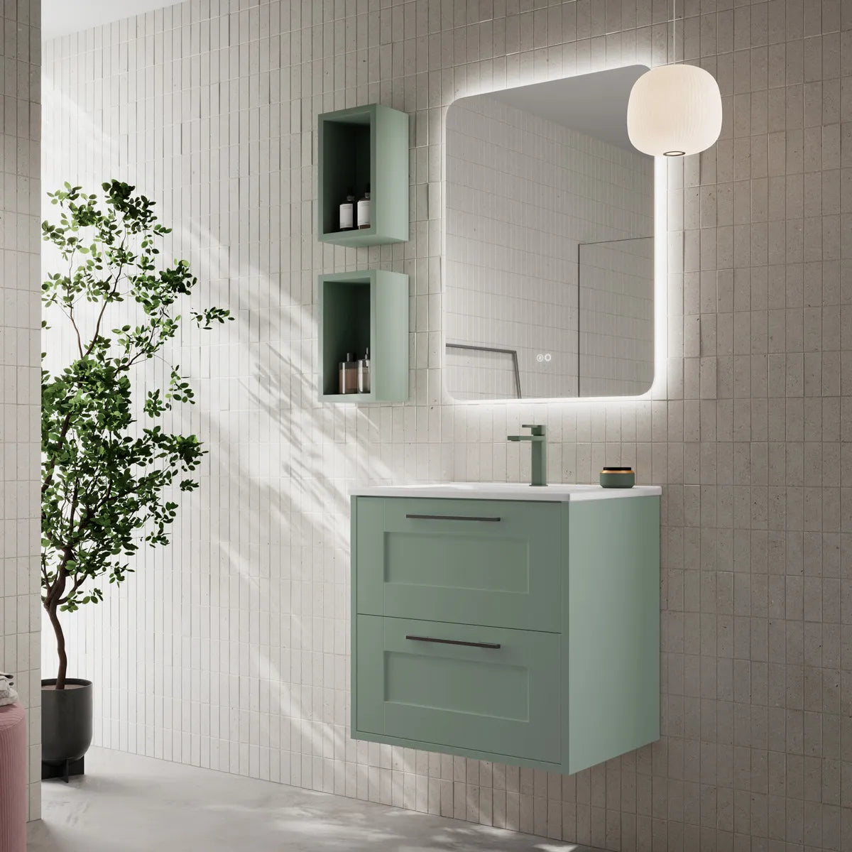 Kan kombineres med vask i Solid Surface i matchende farve eller klassisk hvid, samt blandingsbatteri, bundventil, vandlås og spejl.