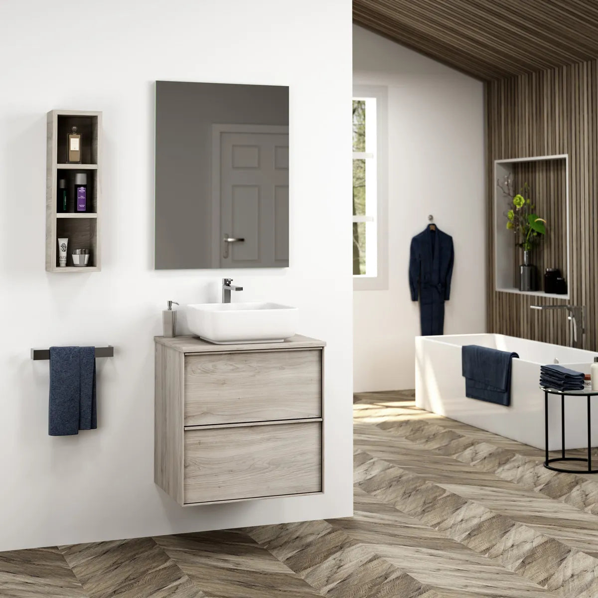 Uanset om du vælger en lys og naturlig egetræsfinish, glat lakeret overflade eller en mørkere og sofistikeret valnødsfinish, tilbyder Tenfors Nordlig en perfekt balance mellem praktiske løsninger og stilrent design. Serien er ideel for dig, der søger en elegant og gennemtænkt møbelserie, der løfter dit badeværelse til nye niveauer af funktionalitet og æstetik.