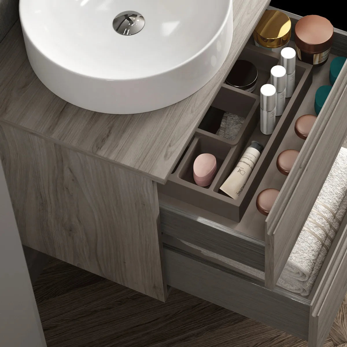 Kommoden leveres uden håndvask, hvilket gør det til en fleksibel løsning, da du kan vælge mellem flere forskellige håndvaske, der passer til netop dit badeværelse og din livsstil.