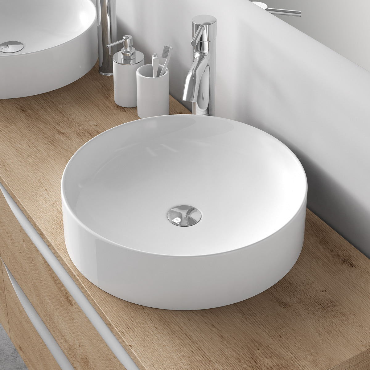 Håndvask Tenfors Rotterdam Ø43 cm i blank hvid er en stilren og moderne fritstående håndvask, der kombinerer høj kvalitet med et tidløst design, hvilket gør den til et fremragende valg for både klassiske og moderne badeværelser. Fremstillet af robust porcelæn tilbyder den holdbarhed og nem rengøring, samtidig med at dens blanke overflade skaber en eksklusiv og elegant følelse, der forhøjer badeværelsets æstetik.