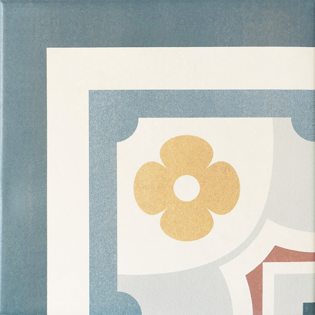 Inspireret af århundredeskiftets klassiske mønstre formidler hjørneflisen en følelse af tradition og elegance. I kombination med dekor- og kantfliserne får du et tidløst design, der passer lige godt i moderne hjem som i mere traditionelle miljøer.