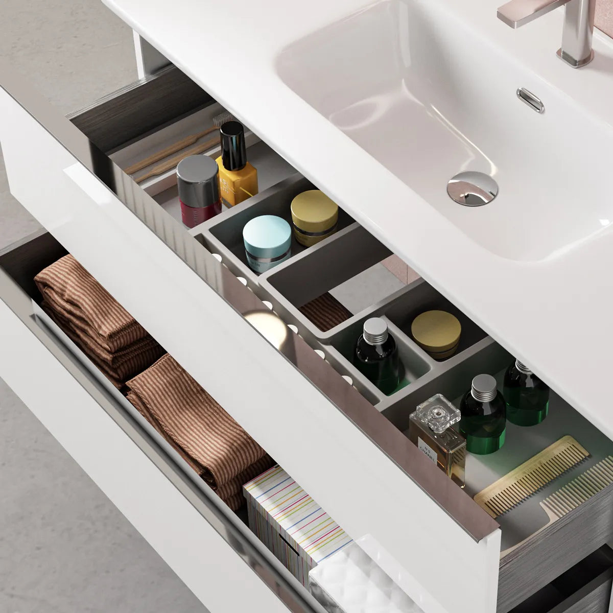 • 120 cm bred – En rymlig lösning med två breda lådor, perfekt för större badrum och familjer.
