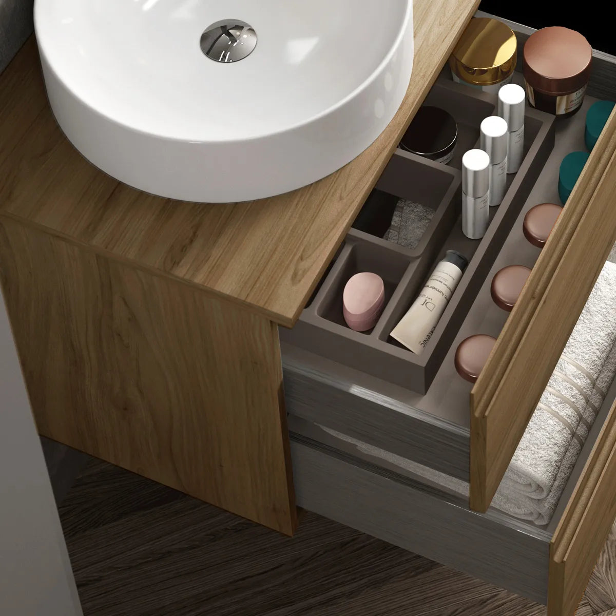 Kommoden leveres uden håndvask, hvilket gør det til en fleksibel løsning, da du kan vælge mellem flere forskellige håndvaske, der passer til netop dit badeværelse og din livsstil.