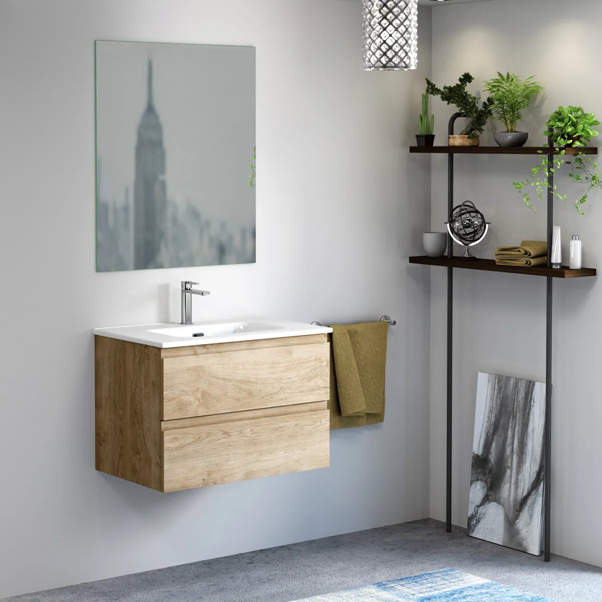 Tenfors Norrvik fås i flere udførelser: Eg, Valnød, Grå Fyr og hvid. Træimitationen er autentisk og giver en varm, naturlig følelse, mens den hvide variant tilbyder et minimalistisk og friskt udtryk. Overfladerne i lamineret MDF er holdbare og fugtresistente, hvilket gør dem særligt velegnede til badeværelsesmiljøer.