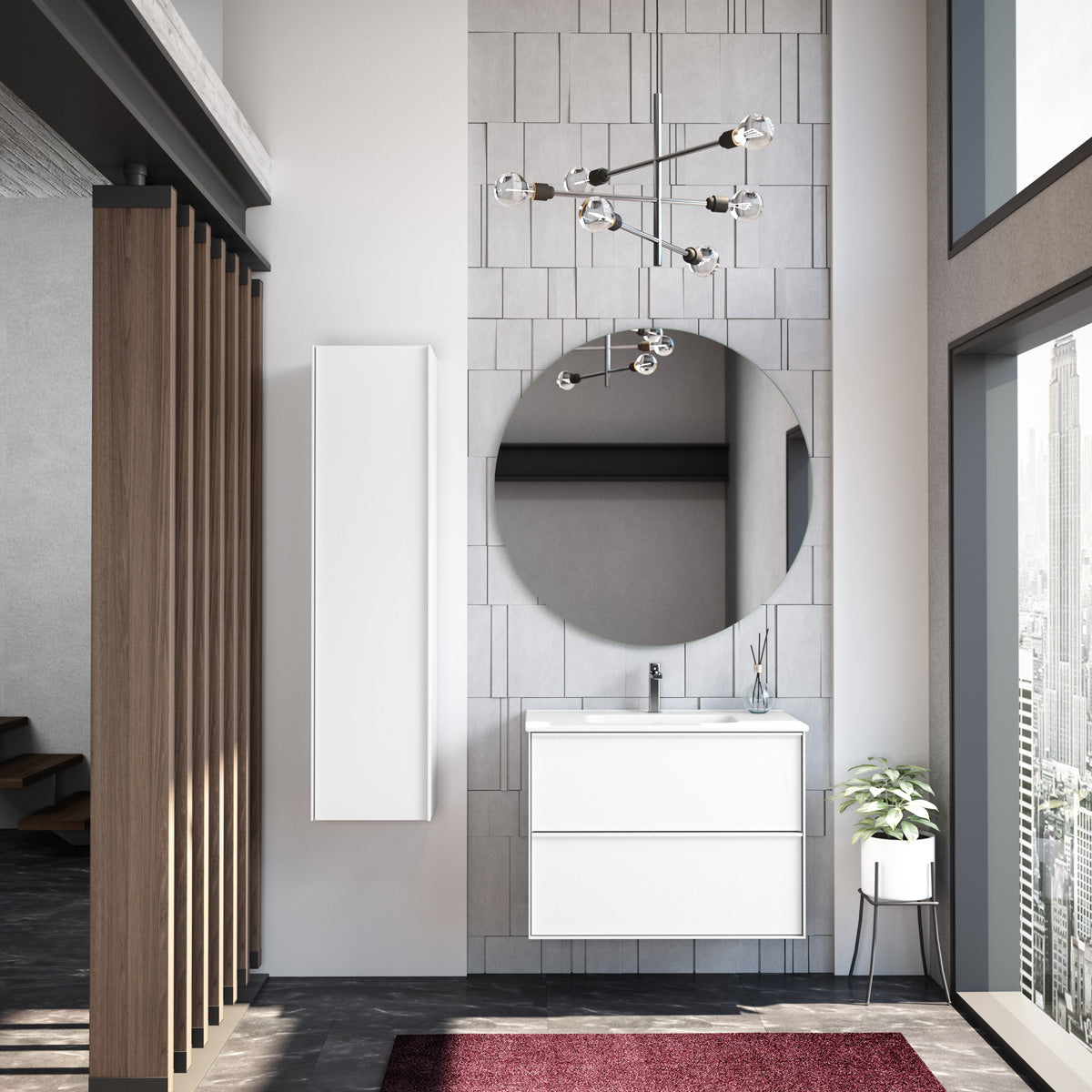 Højskabene i serien måler 35x140 cm og har en dybde på 35 cm, hvilket gør dem perfekte til både små og store badeværelser. De tilbyder rummelige hylder og soft-close døre, hvilket giver praktisk og fleksibel opbevaring til håndklæder og andre badeværelsestilbehør. Den skjulte ophængning giver en minimalistisk og svævende effekt, som letter rengøringen og bidrager til en luftig følelse.